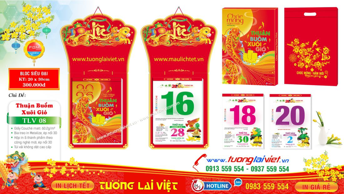 Mẫu Lịch Bloc Siêu Đại Thuận Buồm Xuôi Gió là món quà ý nghĩa mà người Việt mà ai cũng cần để trang trí trong nhà vào dịp ngày Tết một cuốn Lịch Bloc khổ Đại do Công Ty In Lịch Tết Tương Lai Việt phát hành.